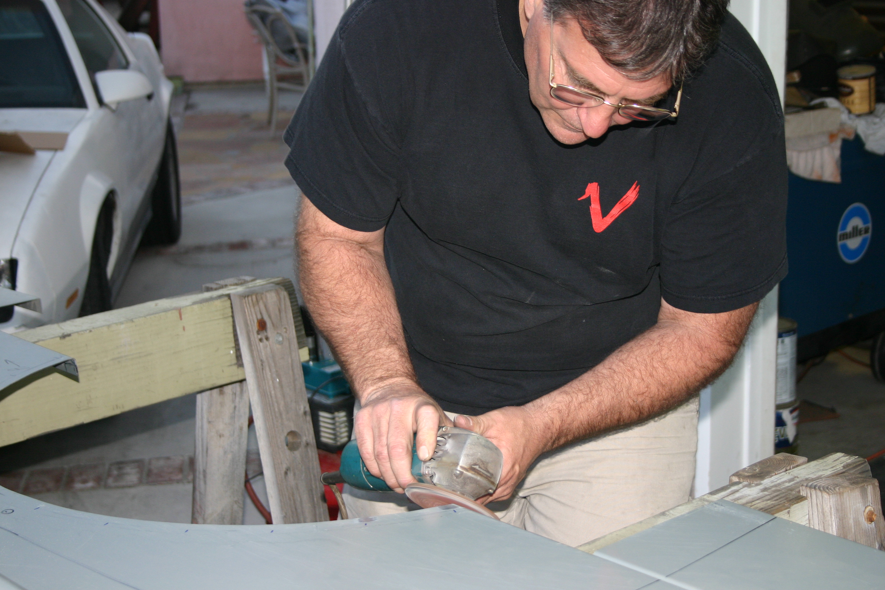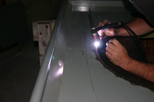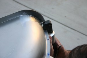 6- Now it is time to remove the heavy primer only from the spots where the bed tubs will be permanently welded to the bed sides. A course grinder does this job quickly.