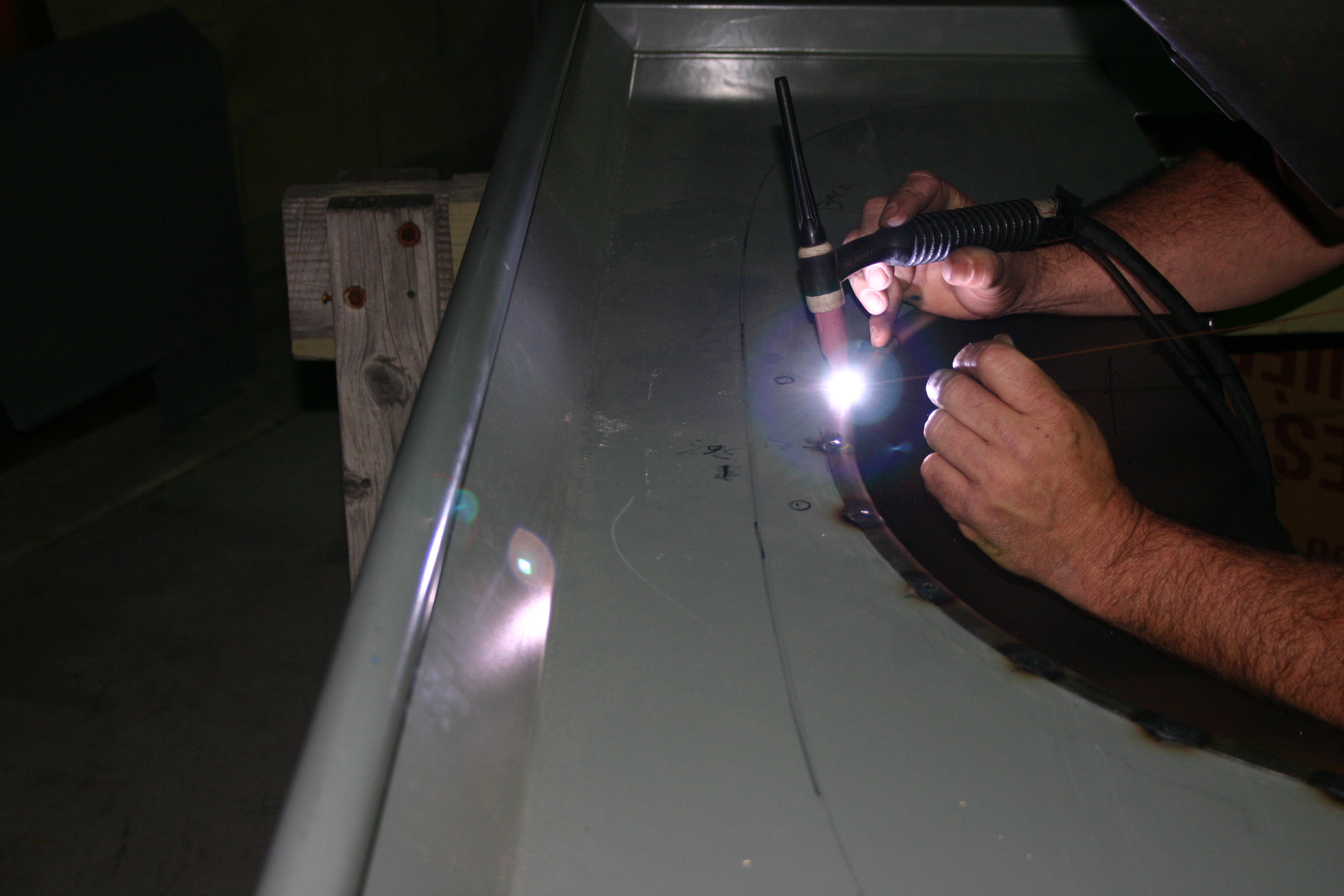 7- Dale used a TIG welder with the least amount of heat to prevent the bed sides from warping from the heat. One drilled hole would be filled, then one a distance away was next to allow the metal to cool evenly without warping. No problems with the TIG method of welding for this job.