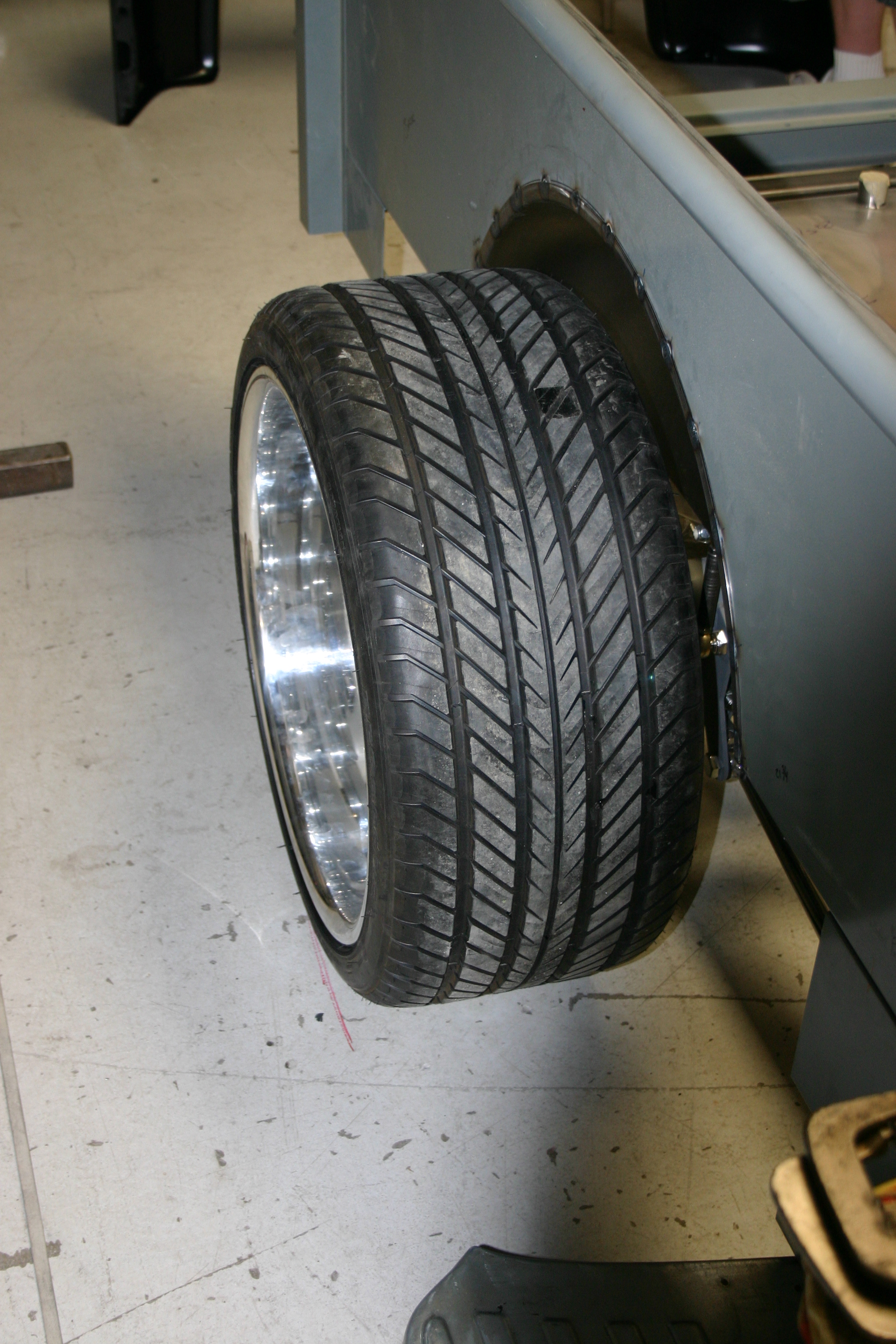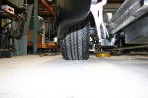 12- With the fenders clamped into place, I then took a look underneath the truck. I was surprised to see just how low the chassis was to the ground and how much room there was between the inside of the tire and the chassis. You guessed it; I opted for even fatter rear tires at this point!