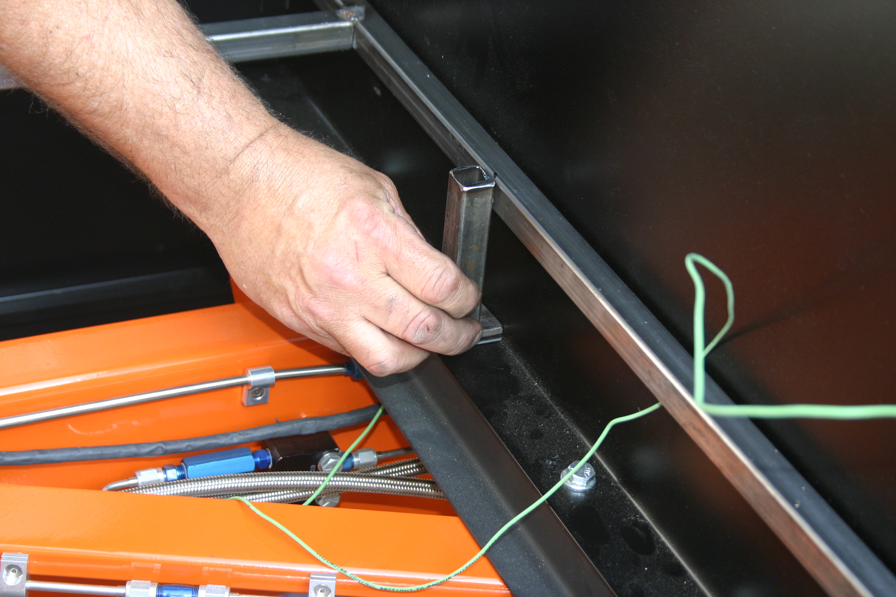 11- With the bed’s sub frame finish welded, the welds were ground flat where they would be flush when touching wood. The frame was then reinstalled into the truck’s bed and bolted in place. A thread locker was used to ensure the bolts would never back out.