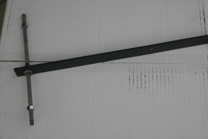3-The tool. For less than $5 anyone can fabricate their own wheel fitment tool by purchasing a stick of threaded rod, four nuts and a section of flat bar stock. Drill two holes, one 1/3 from the end of the bar stock and one at the end as shown.