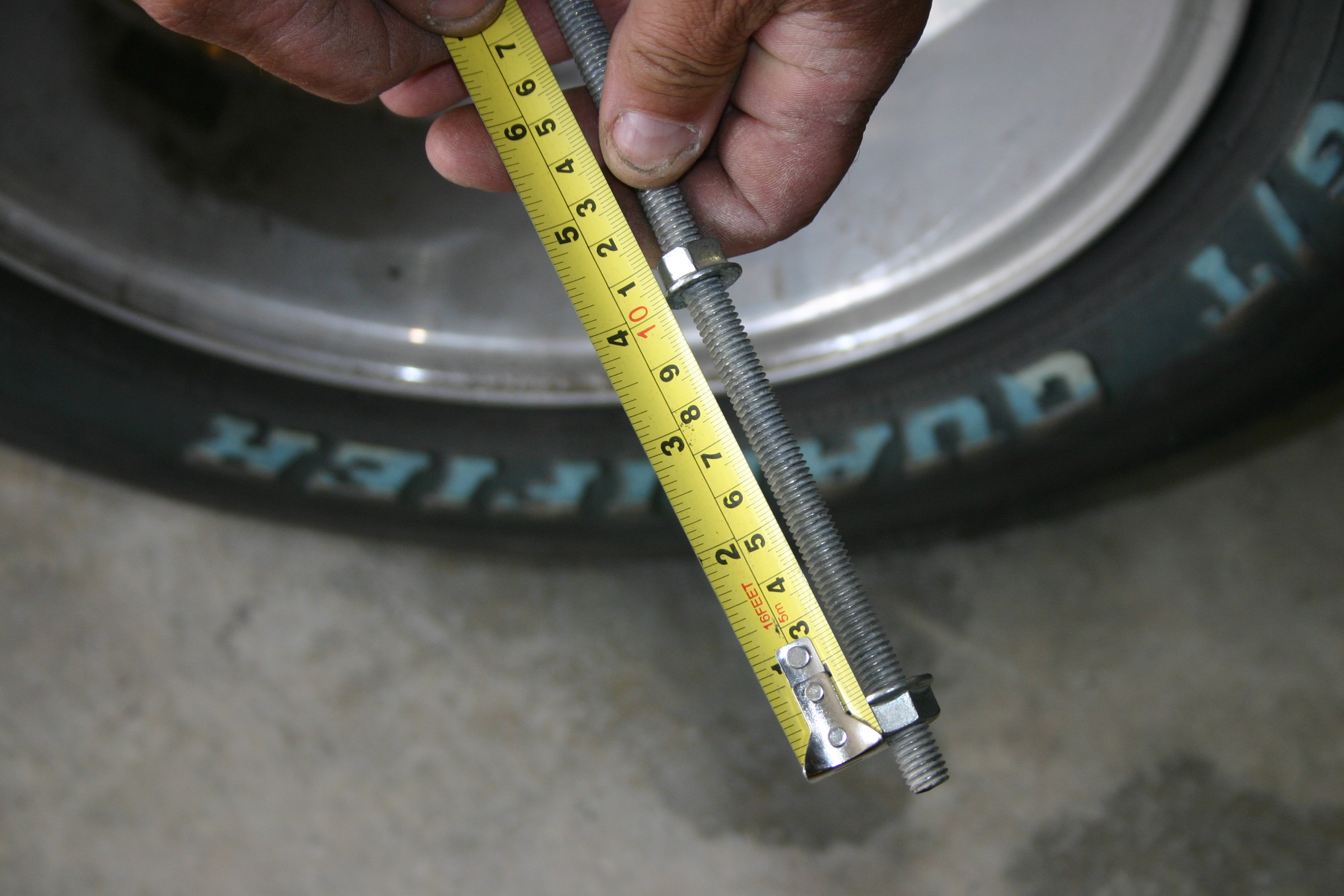 10. The wheel measurements are then transferred to the threaded rod and the nuts are set accordingly.